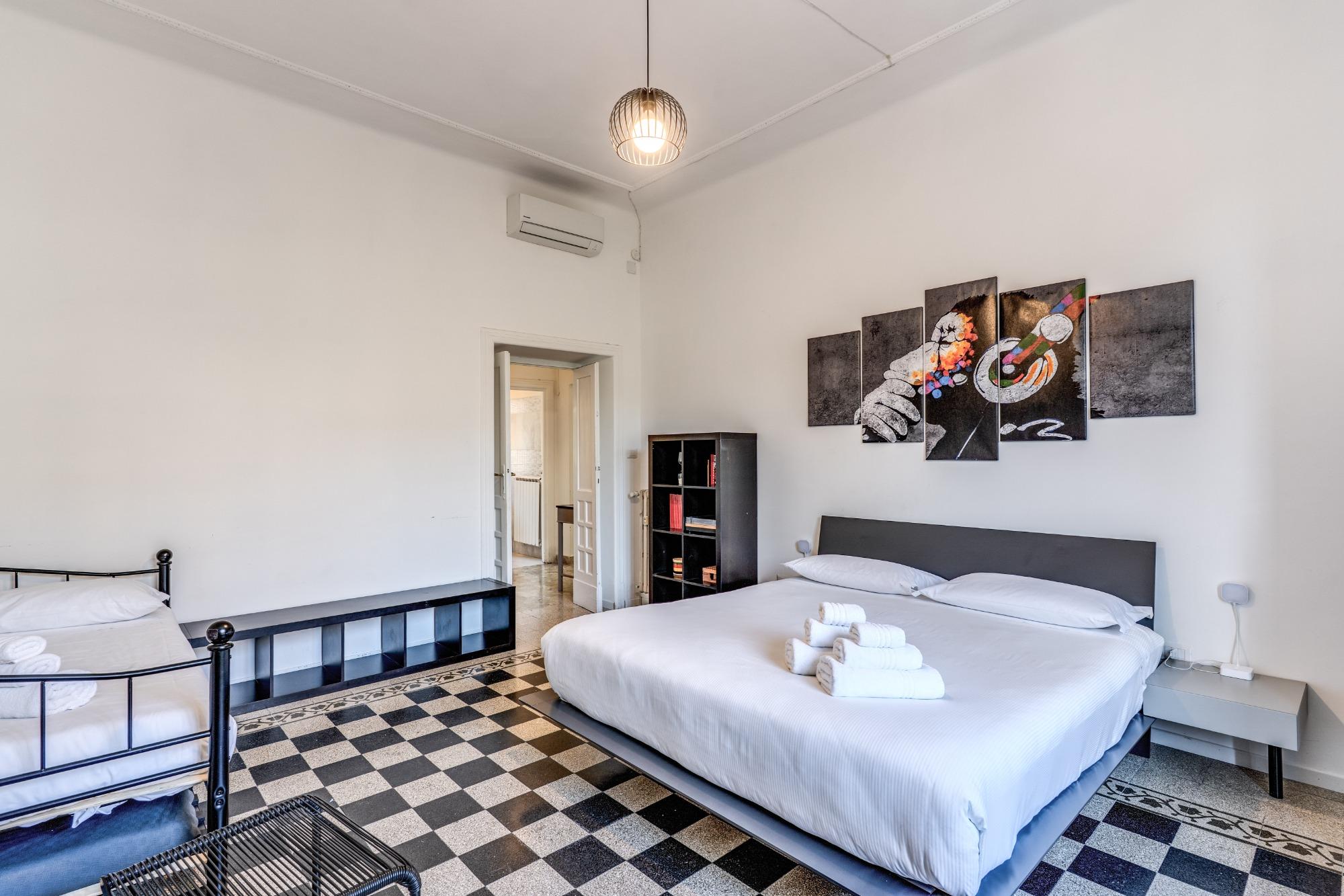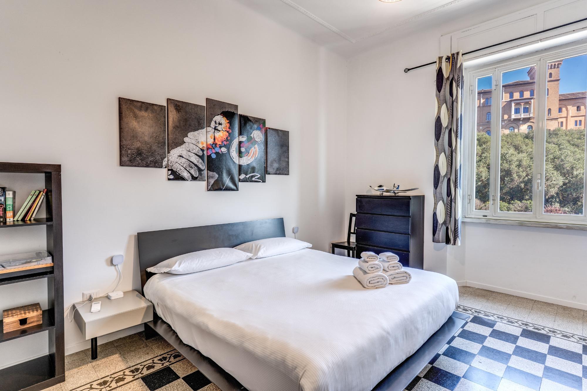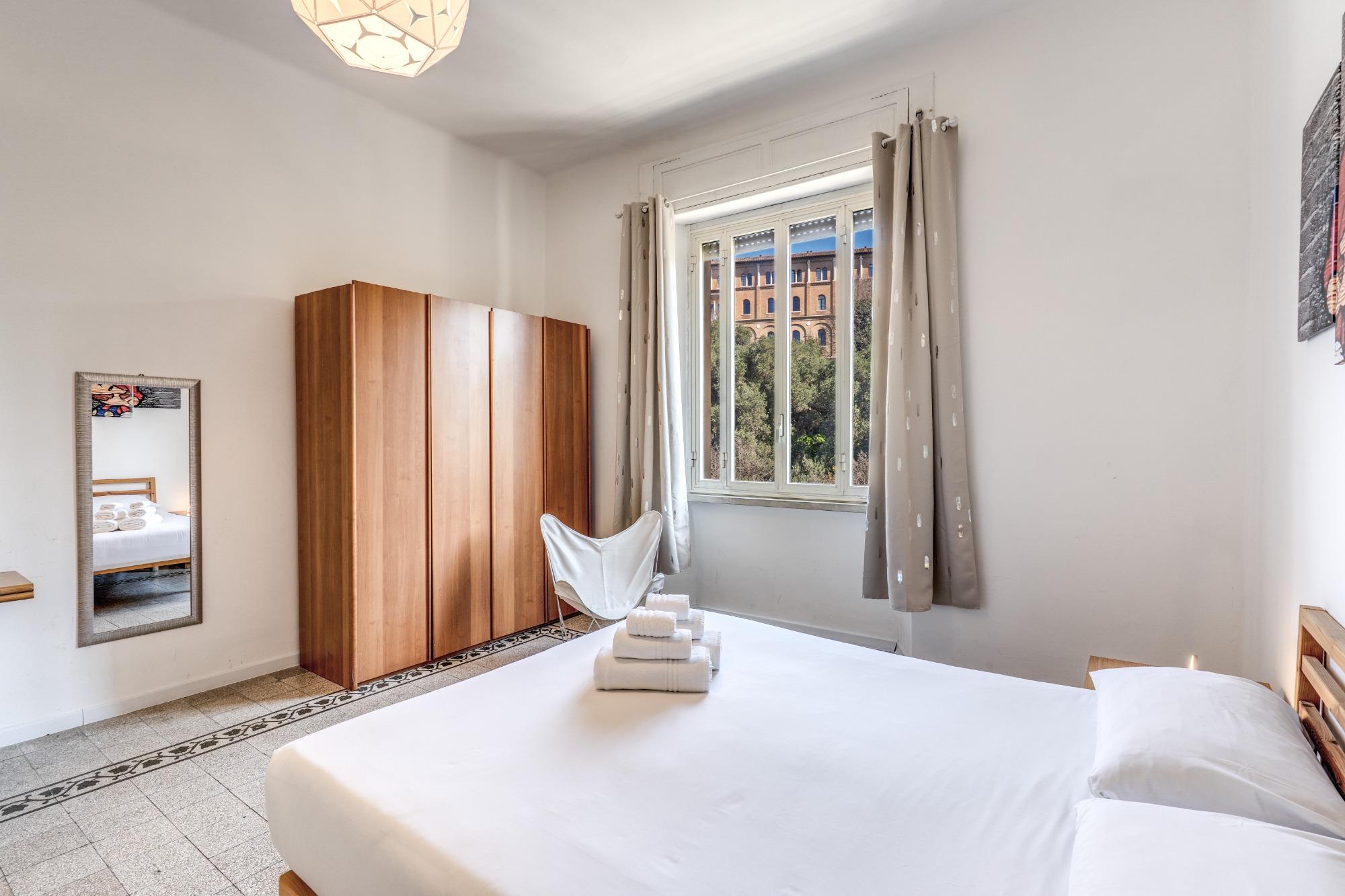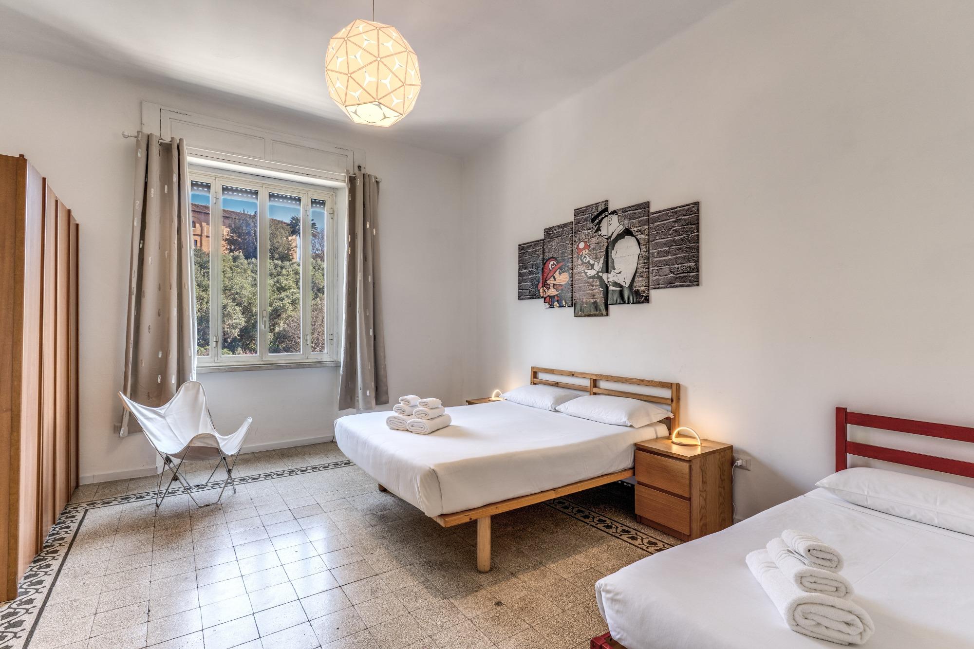 Questo appartamento, situato al quarto piano di un elegante palazzo d’epoca, offre una splendida vista sul verde e si trova nel cuore del vivace quartiere di Testaccio. La posizione centrale è ideale per famiglie o gruppi di amici che desiderano esplorare la città, con la stazione della metro B Piramide a pochi minuti a piedi, rendendo gli spostamenti semplici e rapidi. L’alloggio è composto da due ampie camere, ciascuna in grado di ospitare fino a tre persone, per un totale di sei posti letto. La cucina, spaziosa e vivibile, è dotata di frigorifero, forno e lavastoviglie, offrendo tutto il necessario per preparare pasti in autonomia. Completa l’appartamento un bagno funzionale, perfetto per garantire comfort durante il soggiorno. La sua posizione, nel cuore di Testaccio, permette di godere di un’atmosfera autentica e di avere a portata di mano numerosi ristoranti, bar e attrazioni locali.