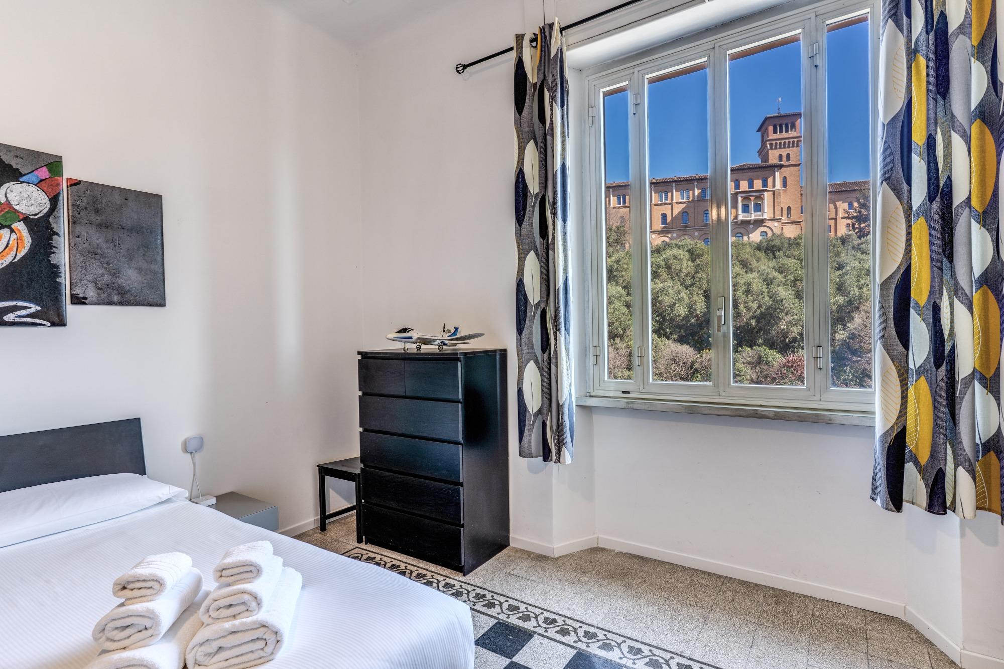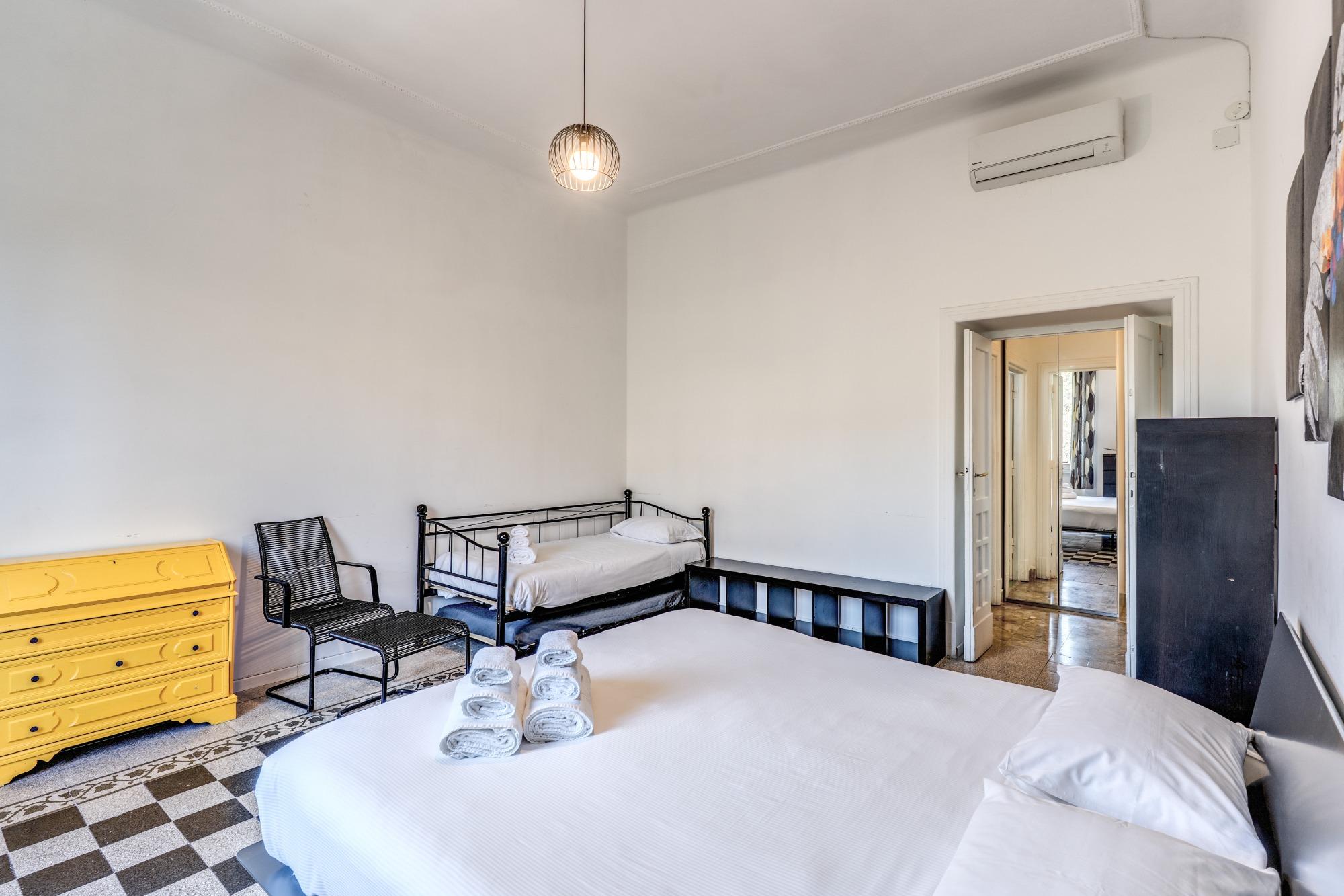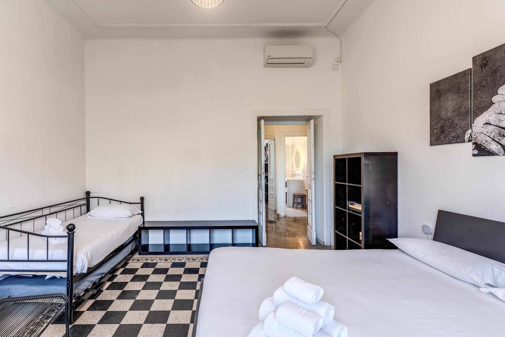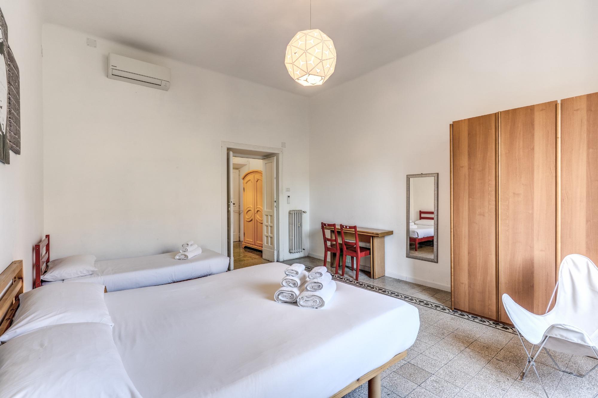 Questo appartamento, situato al quarto piano di un elegante palazzo d’epoca, offre una splendida vista sul verde e si trova nel cuore del vivace quartiere di Testaccio. La posizione centrale è ideale per famiglie o gruppi di amici che desiderano esplorare la città, con la stazione della metro B Piramide a pochi minuti a piedi, rendendo gli spostamenti semplici e rapidi. L’alloggio è composto da due ampie camere, ciascuna in grado di ospitare fino a tre persone, per un totale di sei posti letto. La cucina, spaziosa e vivibile, è dotata di frigorifero, forno e lavastoviglie, offrendo tutto il necessario per preparare pasti in autonomia. Completa l’appartamento un bagno funzionale, perfetto per garantire comfort durante il soggiorno. La sua posizione, nel cuore di Testaccio, permette di godere di un’atmosfera autentica e di avere a portata di mano numerosi ristoranti, bar e attrazioni locali.